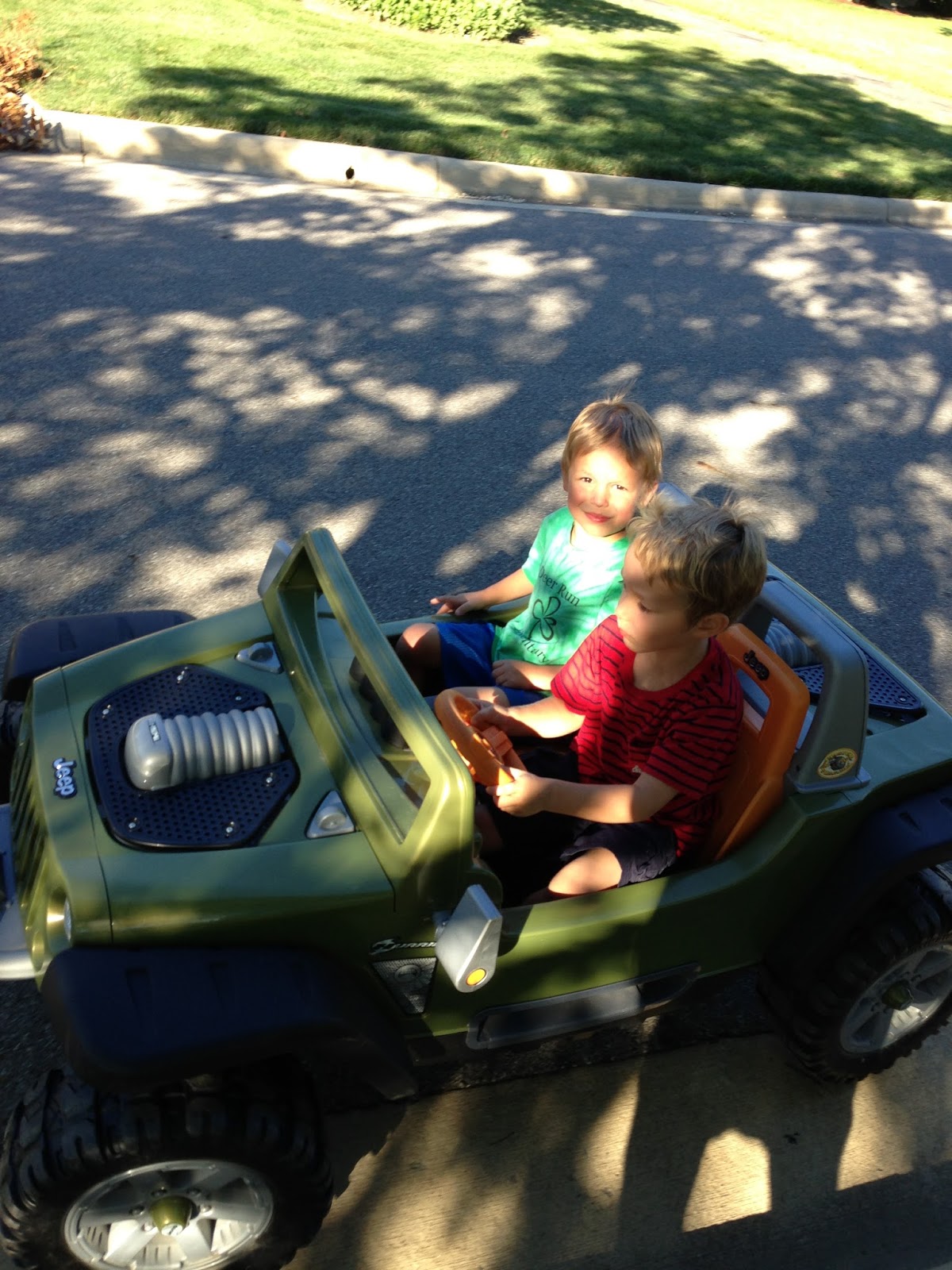 Sam also played really well with the neighbors' 5-year-old boy. He went out several times hoping to find his buddy in the yard. On the last day, Sam even got to drive his jeep! True story: a few days ago, about a month after we left, neighbor rang my mom's doorbell asking if Sam could come out to play.